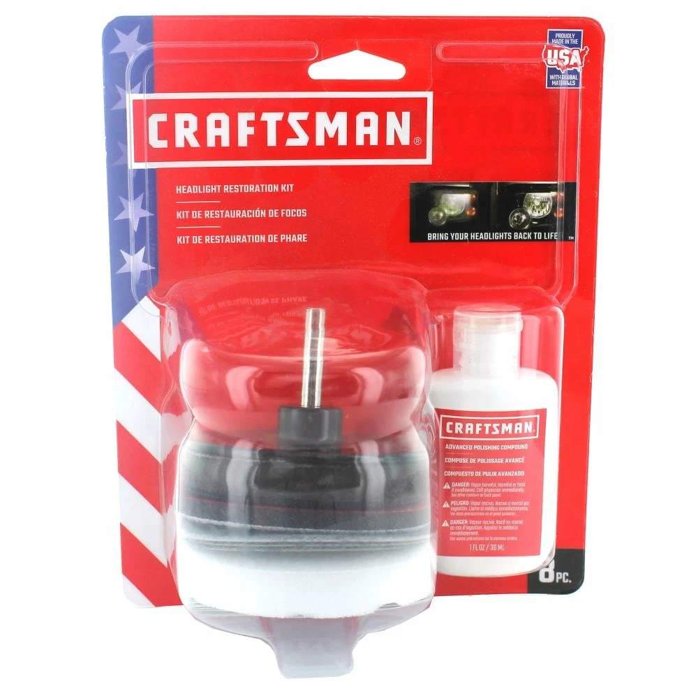 The Craftsman headlight restoration kit restores clarity to headlight lenses that have become cloudy, yellow or hazy over time.