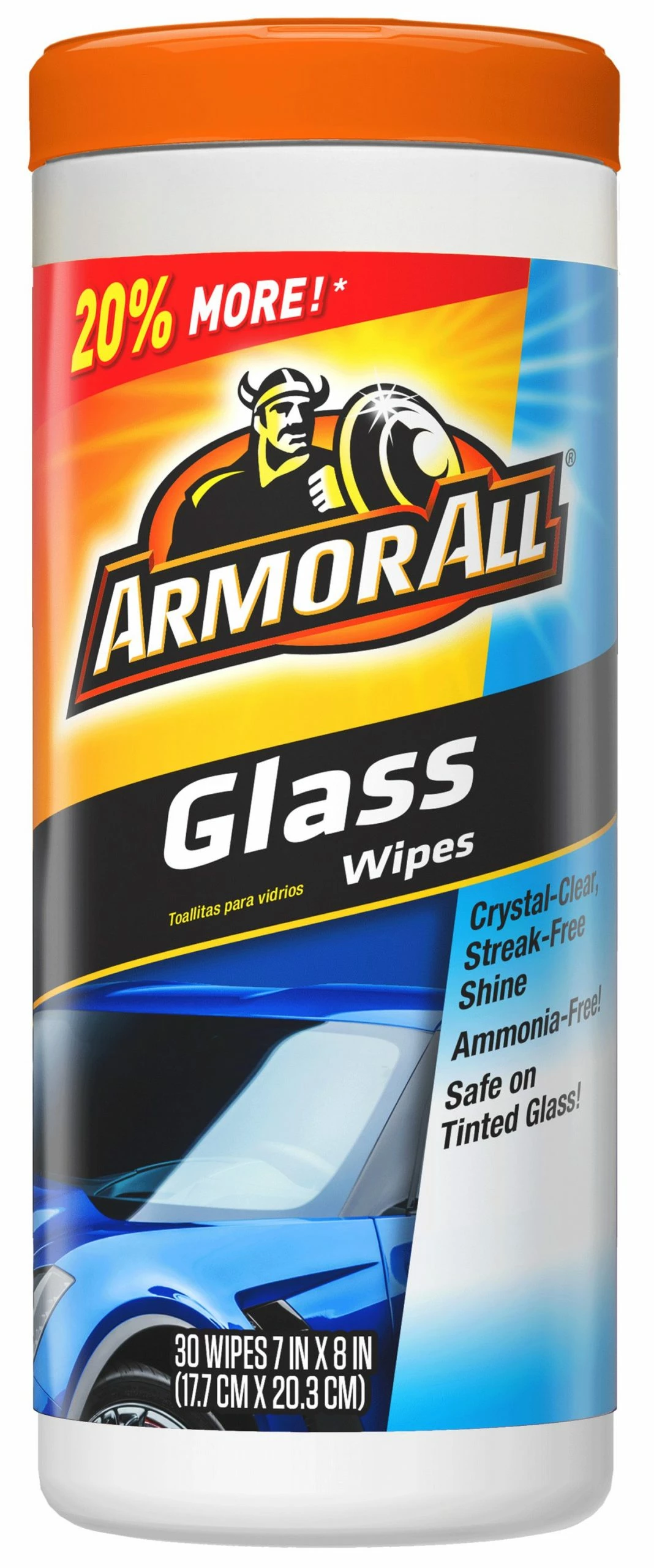 Your car’s delicate surfaces are too important to trust to a household cleaner. Some household glass cleaners contain ammonia, which may damage automotive surfaces. Armor All® glass wipes are ammonia free and are specially formulated for the toughest automotive jobs, easily removing filmy residue, road grime, bugs, fingerprints and more. Convenient, disposable Armor All® glass wipes deliver spotless, sparkling glass with amazing clarity and shine with no streaking or hazing. Features a moisture lock lid that keeps the wipes from drying out for one year after purchase.