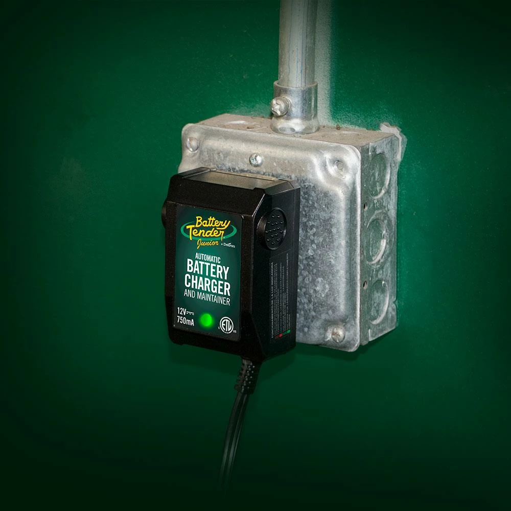 “The Battery Tender® Junior 12V, 750mA Battery Charger and Maintainer is all you need to stay charged, extend your vehicle’s battery life. It’s easy to use, safe and secure. Boost your ride’s battery life with the Battery Tender® Junior Automatic Battery Charger and Maintainer by Deltran for motorcycles, ATVs, and more! Unlike typical trickle chargers that can overcharge a battery and cause damage when connected for too long, our advanced charger and maintainer provide a full charge before switching to float mode to keep your battery at an optimal charge. Designed for use with powersports, it can even assist with automotive vehicles!