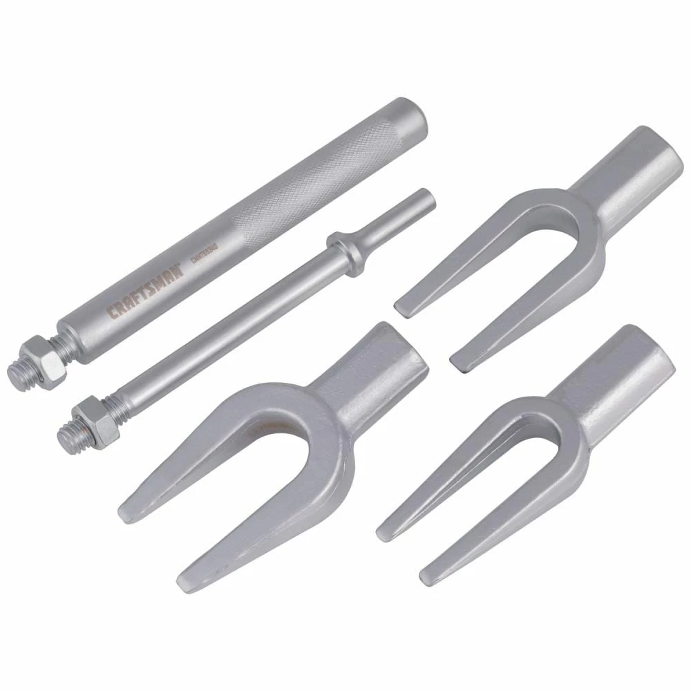 The pickle fork is a universal tool to assist separating ball joints, pitman arms, tie rods and more. The CRAFTSMAN® Pneumatic/Manual Pickle Fork Set offers 3 fork sizes making it applicable to a wide range of applications. Two handles are included that allow each fork to be used with either a manual hammer or an air hammer.