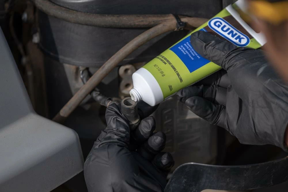 GUNK Anti-Seize Dielectric Grease is a dual purpose, synthetic, non-drying dielectric paste and anti-seize compund. Meets Military Specification MIL-A-97E. Designed as a unique preventative maintenance tool providing complete parts protection on threaded fittings and all metal surfaces subjected to harsh environments or high temperatures. Chemically inactive, waterproof, with high dielectric properties; it is an excellent material for protecting electrical parts and assemblies such as connectors, disconnect junctions, terminals, ignition systems, cable connectors, and battery terminals.