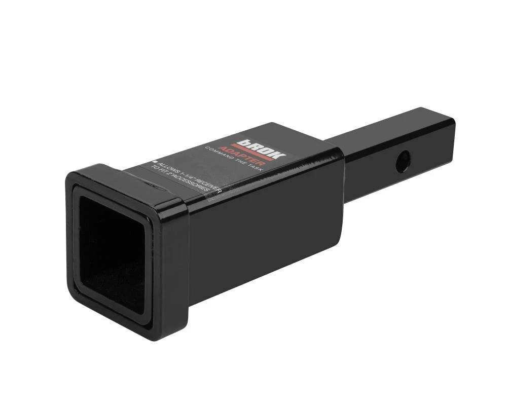 The bROK adapter is the convenient, fast method to convert from an 1-1/4-in class I-II receiver to a 2-in class III-IV receiver. 2-in receivers are very popular for accessories such as bike racks and cargo trays. This bROK adapter enables the towing of your 2-in accessories without changing your vehicle mounted hitch.