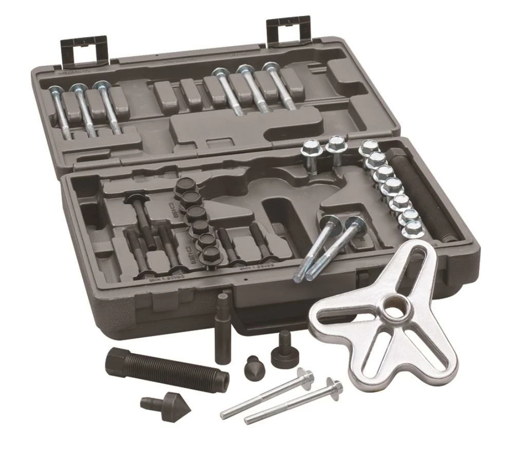 - Works on harmonic balancers, steering wheels, crankshaft pulleys and gears