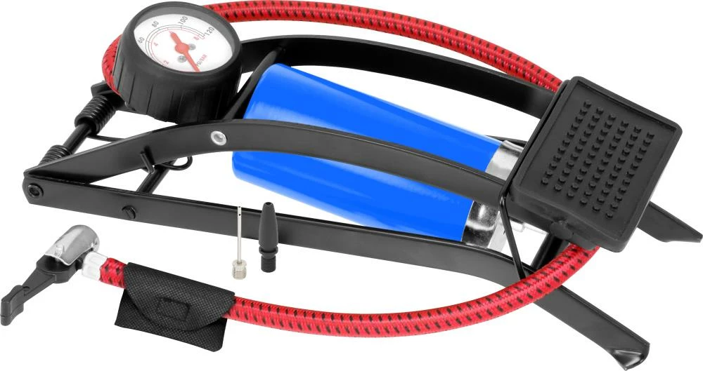 This universal Monkey Grip foot pump can be used to inflate tires, sports balls or other inflatables. The easy-to-use foot stomp platform allows for leverage when inflating up to 120 PSI.