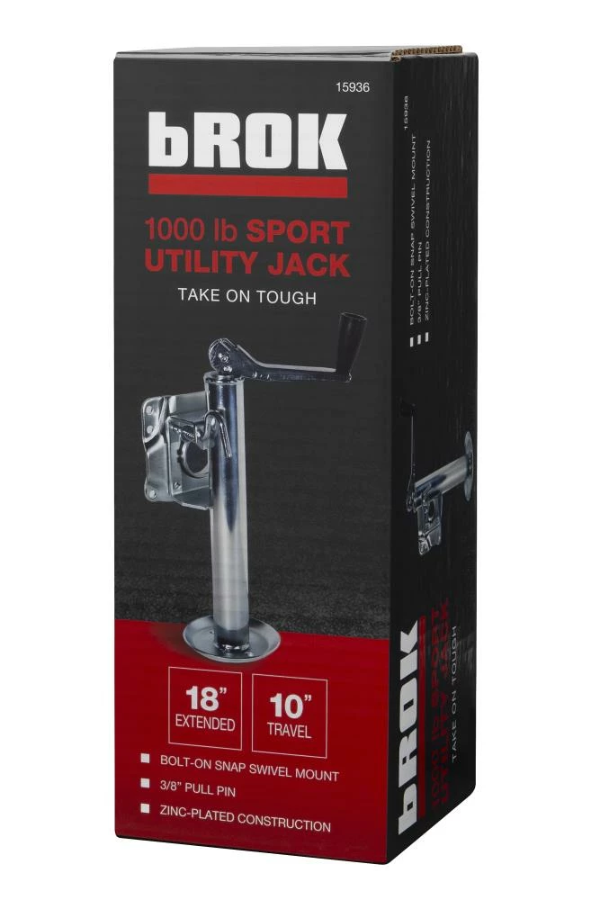 The bROK 1,000-lbs side mount jack is the perfect replacement jack for your trailer. It’s zinc and chrome plating are ideally suited for the environment and the swivel mounting plate quickly allows the jack to swing up for storage or down for use. The oversize round foot plate design makes easy work of stabilizing your trailer into position for storage. Easy and convenient top wind handle provides easy access and use and the included mounting makes operation a snap.