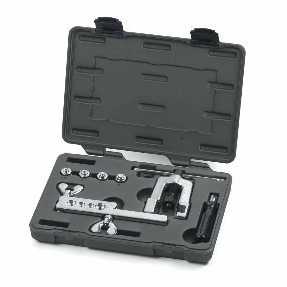 - Additional set contents: metric bar assembly, yoke assembly, reamer, 47 mm flaring tool adapter, 6 mm flaring tool adapter, 8 mm flaring tool adapter, and 10 mm flaring tool adapter