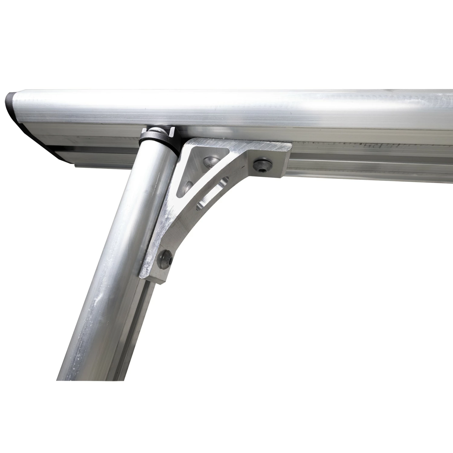 The TR701-A Werner aluminum truck rack for most full size and compact pick-up trucks securely mounts on top of the truck bed with compression clamps. The professional grade aluminum truck rack is easy to install with no drilling required. Included with the rack are 4 plastic ladder stops that slide easily into the cross members. Maximum load capacity is 800 lbs. evenly distributed.